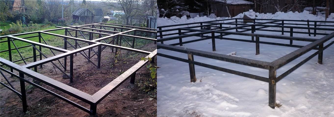 В верхней части каждой из самодельных опор привариваются металлические пластины прямоугольной формы, используемые в последствии для связки с ростверком.