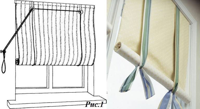 Чтобы шторка поднималась можно продеть еще один шнур с нижнего кольца до верхнего, и регулировать изделие.