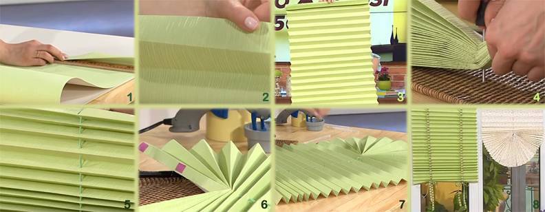 - Шторы плиссе из бумаги следует тщательно проглаживать на сгибах, а все грани должны быть ровными и аккуратными.