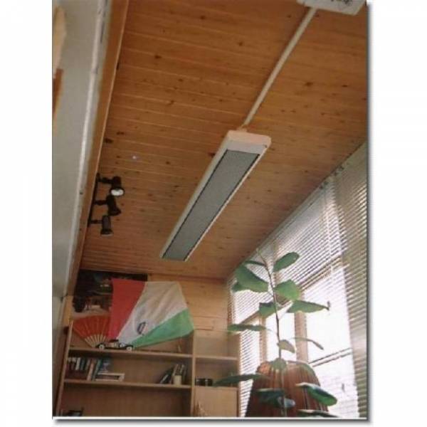Потолочные ИК-модели удобны при установке. Они занимают мало места и могут обогревать большие участки. Такой обогреватель можно прикрепить к потолку парника или теплицы. Есть модели, разработанные специально для подвесных потолков. Их встраивают в потолок так, что они становятся незаметными. Все потолочные устройства прикрепляют к поверхности подвесами-кронштейнами.