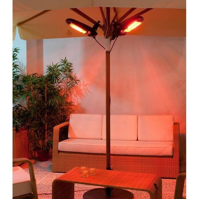 Для работы вне помещений используются специальные тепловые зонтики – это электрические или газовые инфракрасные обогреватели для уличного применения. Они обогревают площадь в радиусе нескольких метров, работая на электричестве или баллонном газе.