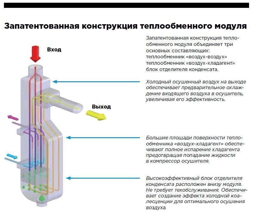 Данный принцип конденсации нашел свое отражение в оборудовании осушитель воздуха для бассейна aerial. Поэтому, исключительно присутствию эффекта «теплового насоса», при котором выходящий воздух теплее входящего, появилась возможность увеличения энергопотребления в несколько раз.