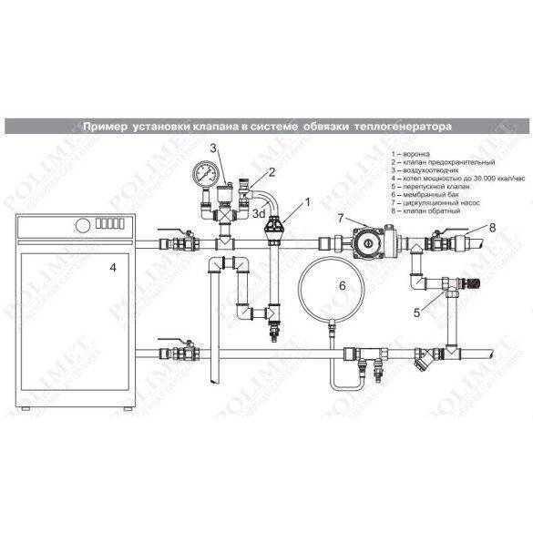 Диаметр предохранительного клапана не может быть меньше разъема подводящего патрубка. Иначе постоянное гидравлическое сопротивление не даст предохранителю в полной мере выполнять непосредственные задачи.