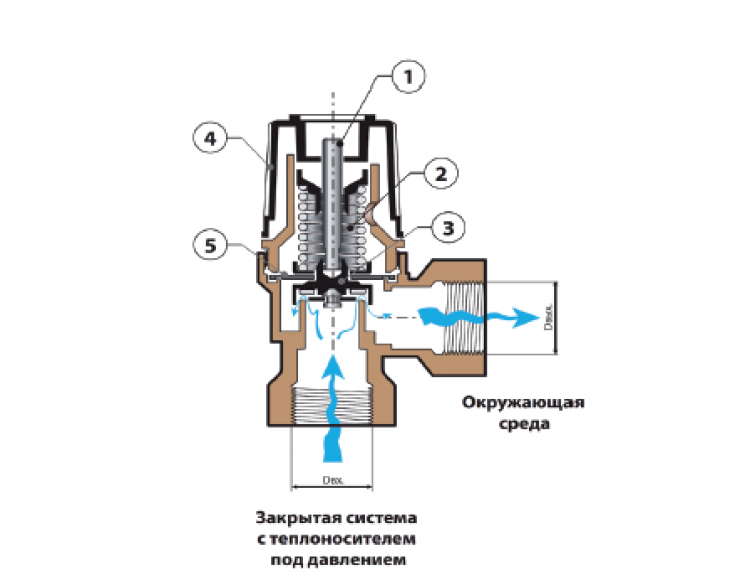 - Предохранительный клапан, применяемый для защиты системы отопления, возвращается в ранее установленное положение.