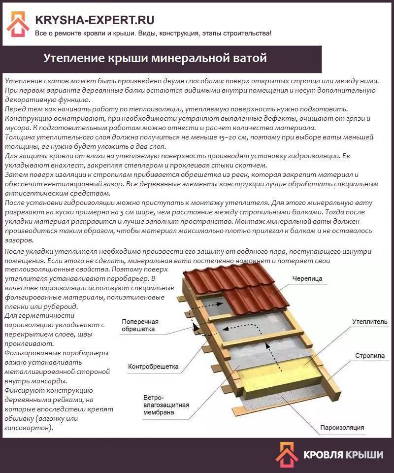- все элементы крыши, в том числе материал утеплителя, должны хорошо проветриваться;