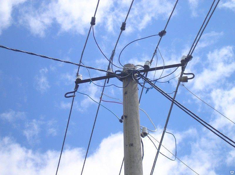 При воздушной прокладке кабелей необходимо их крепить к столбам, стенам зданий и другим объектам. Есть крепеж для самонесущих и обычных кабелей. Обычные кабели между столбами без опоры подвешивать нельзя — они не выдержат нагрузки и порвутся. Для таких проводников между опорами натягивается трос и уже к нему на подвесах крепится кабель. В этом случае нагрузка приходится на трос, а не на кабель. Способы крепления троса — любые, но самый распространенный — сделать петлю вокруг столба, зафиксировать конец. Для промежуточных столбов можно использовать любой доступный способ — два отдельных троса, вбитый крюк, подходящий кронштейн.