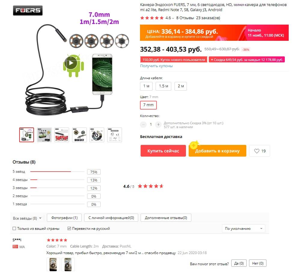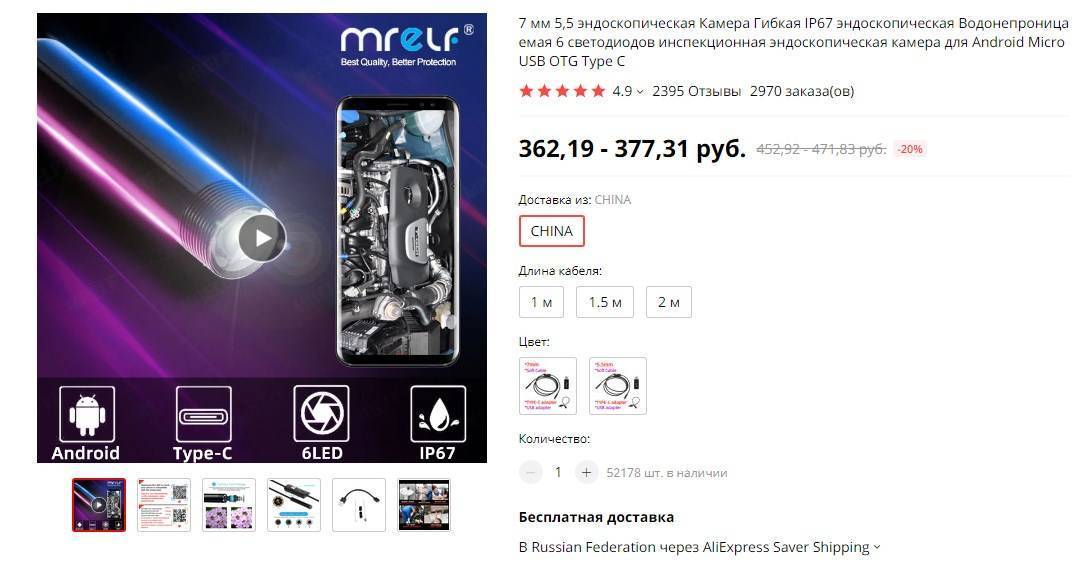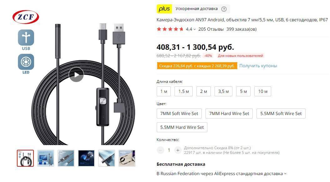 Средний ценник эндоскопа Fuers — 330 рублей