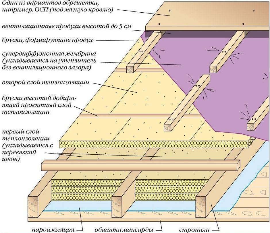 К супер диффузионной мембране утеплитель можно располагать вплотную. Во всех остальных случаях необходимо оставлять вентиляционный зазор