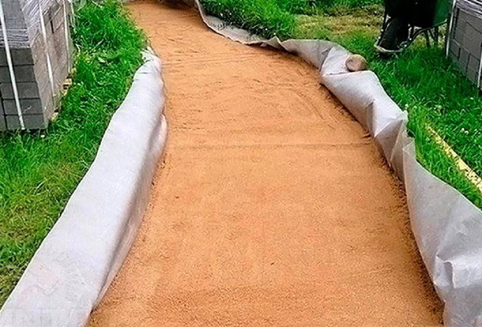 С помощью данной материи обустраиваются красивые дорожки в саду