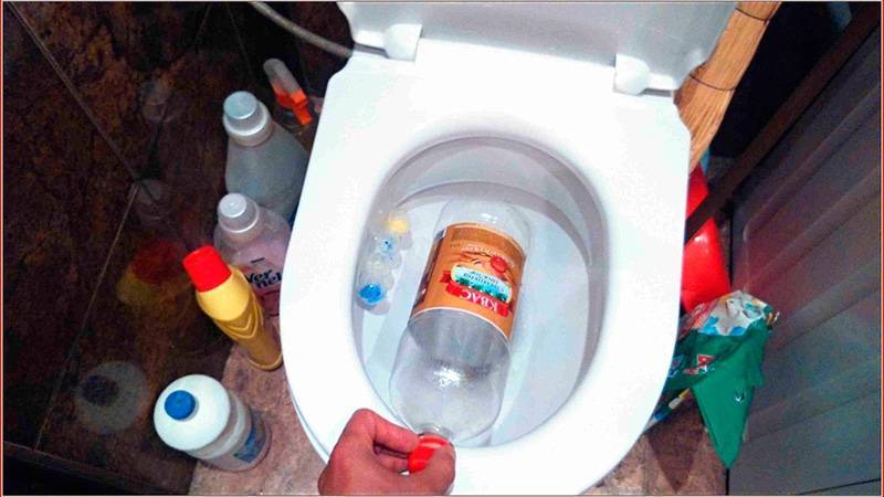 Если такого изделия в доме нет, можно задействовать стандартную пластиковую бутылку с отрезанным дном — ею пользуются аналогично, как и вантузом.